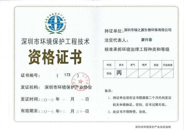 深圳市綠之源生物環(huán)保有限公司成立十余年,是經(jīng)深圳市環(huán)保局批準(zhǔn)的具有專項環(huán)保工程設(shè)計資質(zhì)的企業(yè),深圳市高新技術(shù)企業(yè)。公司從創(chuàng)立初期的水處理藥劑、水處理設(shè)備的研發(fā),逐步成長為環(huán)保類綜合性服務(wù)的企業(yè),目前年營業(yè)額約三千萬,集水處理藥劑研發(fā),工業(yè)廢水、廢氣及農(nóng)村生活污水處理等環(huán)保工程的設(shè)計、安裝、調(diào)試、運營、技術(shù)咨詢一條龍服務(wù),為珠三角眾多企業(yè)服務(wù),解決相關(guān)環(huán)保難題,并取得了良好的社會效益和環(huán)境效益。